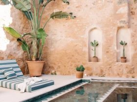 The blue color of the pool is echoed by the mosaic tiles that cover this inflatable pool above ground. This is a stylish look that’s affordable when you keep it to smaller sizes.